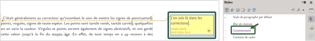 Le style de commentaire de Writer peut être modifié, comme pour n’importe quel style (affichez-moi donc ce Volet latéral, bon sang).