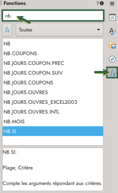Un changement très bienvenu dans Calc : l’apparition d’un champ de recherche dans l’onglet Fonctions dans le Volet latéral.