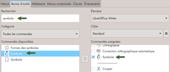 Ajout du bouton Symbole à la barre d’outils standard de Writer.