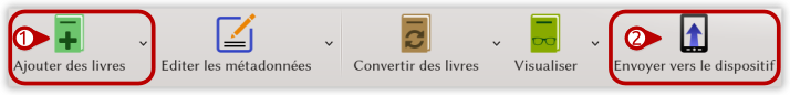 Il a fallu finalement se résoudre à les ajouter à la bibliothèque de Calibre puis ⁡② les envoyer sur le dispositif. Et là, impeccable, j’ai pu ouvrir tous les livres.