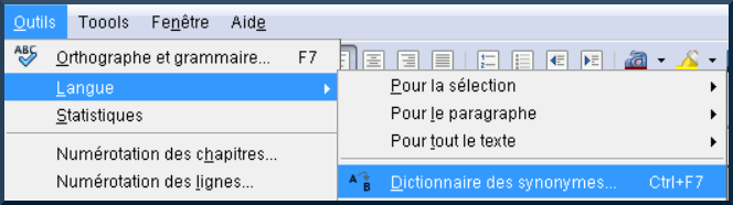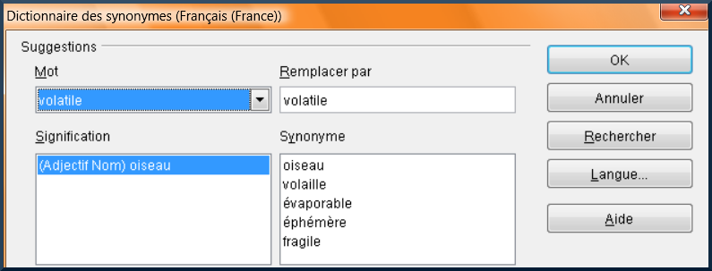 Avec OpenOffice Writer : Outils/Langue/Dictionnaire des synonymes ou Ctrl+F7.