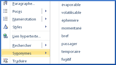 Avec Word : clic droit sur le mot concerné puis synonyme.