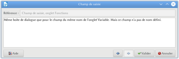 - Champ de saisie de l’onglet Variables, il est lié à une variable dont il porte le nom ;