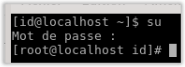 Entrez la commande su puis votre mot de passe à l’invite pour passer en mode administrateur.