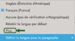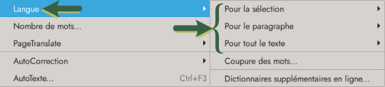 Il reste une troisième possibilité, passer par le menu Outils → Langue après avoir, ou pas en fonction des besoins, sélectionné le texte pour indiquer la langue du passage (ou de tout le texte).