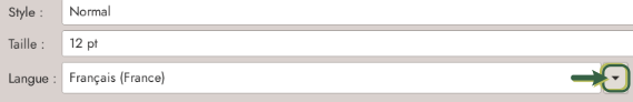 Il est également possible de configurer un style de paragraphe ou de caractère avec une langue spécifique. Dans ce cas, dans le Volet latéral, clic droit sur le style concerné → Modifier. Cela se configure comme ci-dessus (même boîte).