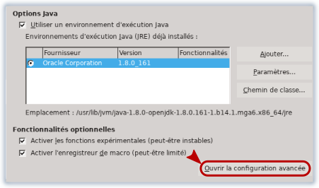 Aller dans les Options Avancées de LibreOffice (menu Outils), cliquer sur Ouvrir la configuration avancée.