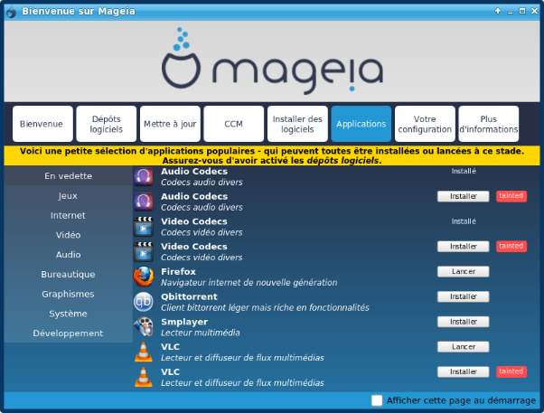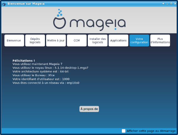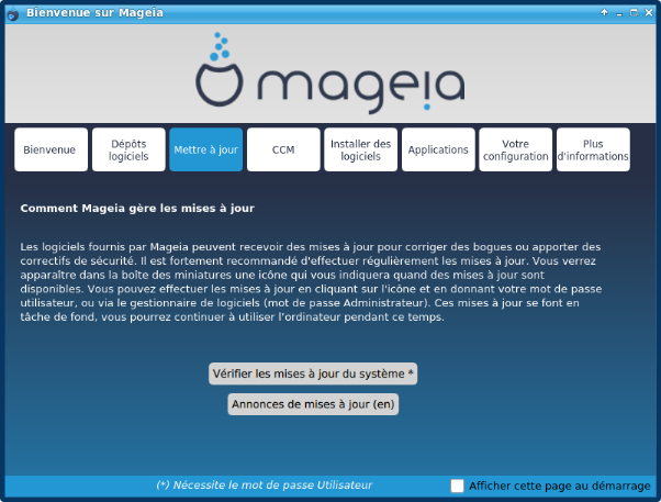 Une amélioration qu’on voit bien, puisque cela s’affiche au premier démarrage, la Bienvenue sur Mageia a été entièrement repensée, contenu, navigation comme allure. Elle est, comme je l’ai déjà dit, plus efficace et informative, voire plus didactique. De quoi rassurer les personnes qui découvrent leur première distribution GNU/Linux avec Mageia. Et, bien sûr, il est toujours possible de décider de n’afficher cette bienvenue qu’à volonté en passant par le menu Outils des applications de Mageia.