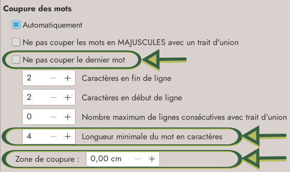 La fonctionnalité de coupure des mots s’est enrichie de trois nouvelles possibilités :