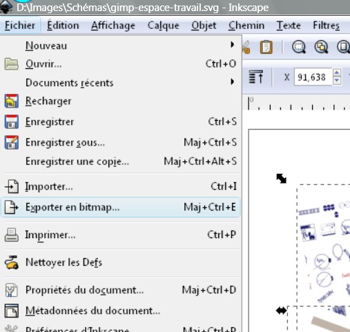 L’astuce consiste à enregistrer (donc exporter en bitmap pour Inkscape) les éléments en fichiers séparés