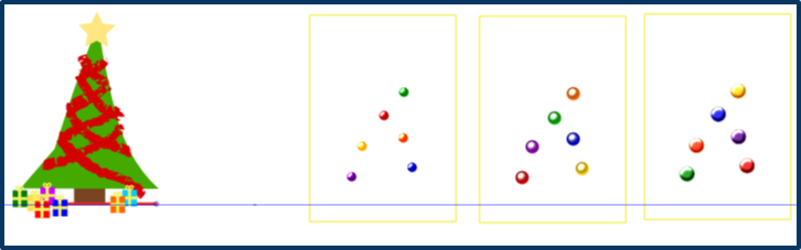 - positionner exactement ce rectangle vide sur le sapin et placer les boules,