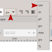 Comme vous avez sûrement plus facilement votre téléphone sous la main que ses caractéristiques techniques, je suggère de prendre une règle, de mesurer la taille de l’écran et de reporter les dimensions sur le dessin dans Inkscape. Il suffit de bien sélectionner l’unité « kivabien » donc, ici cm ou mm.