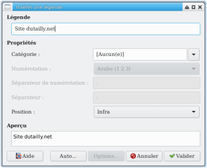 Insérer une légendeIci on a opté pour aucune catégorie. On ne pourra pas l’indexer.id2021 - sélectionner le texte de la légende et insérer l’hyperlien.