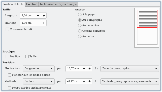 Boite de dialogue taille et position de WriterUne boite de dialogue à utiliser pour placer bien finement les objets.id2021
